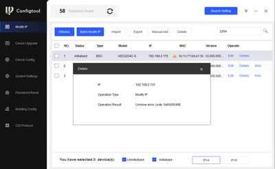 - If configtool fails to modify the password and give the error: Unknown error, code: 0x80000207 (from warning triangle icon), please modify the password under "Search Setting" to match the access control and try again.