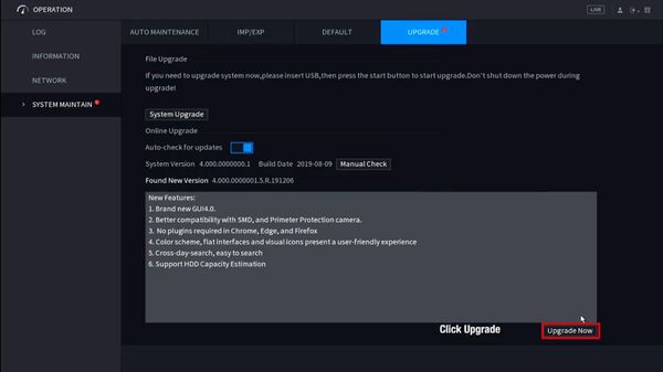 This page will show you how to update your Dahua Recorder online.