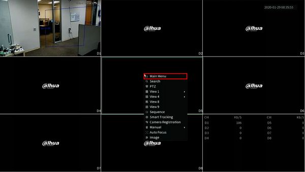 From Live View, right click Select Main Menu
