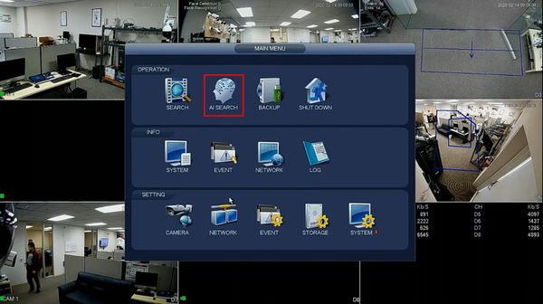 2. Under AI > Smart Search choose Facial Detection and set your channel, time frame, and search filters.