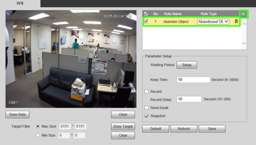- Dahua device with Abandoned / Missing IVS feature